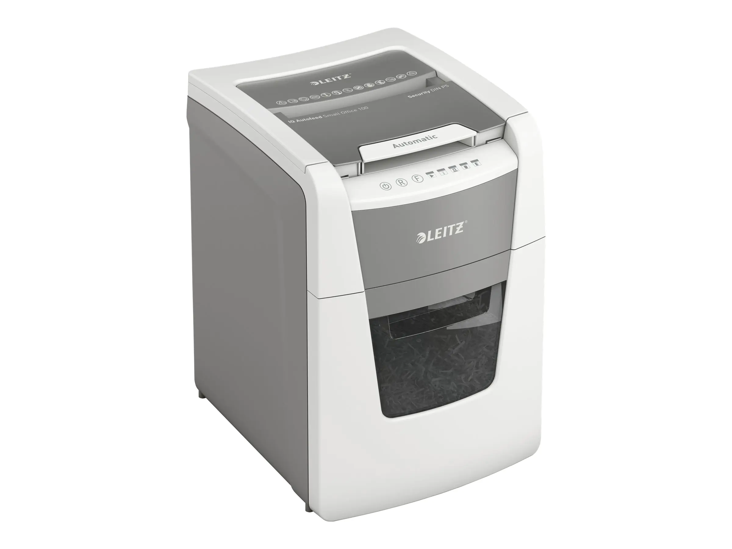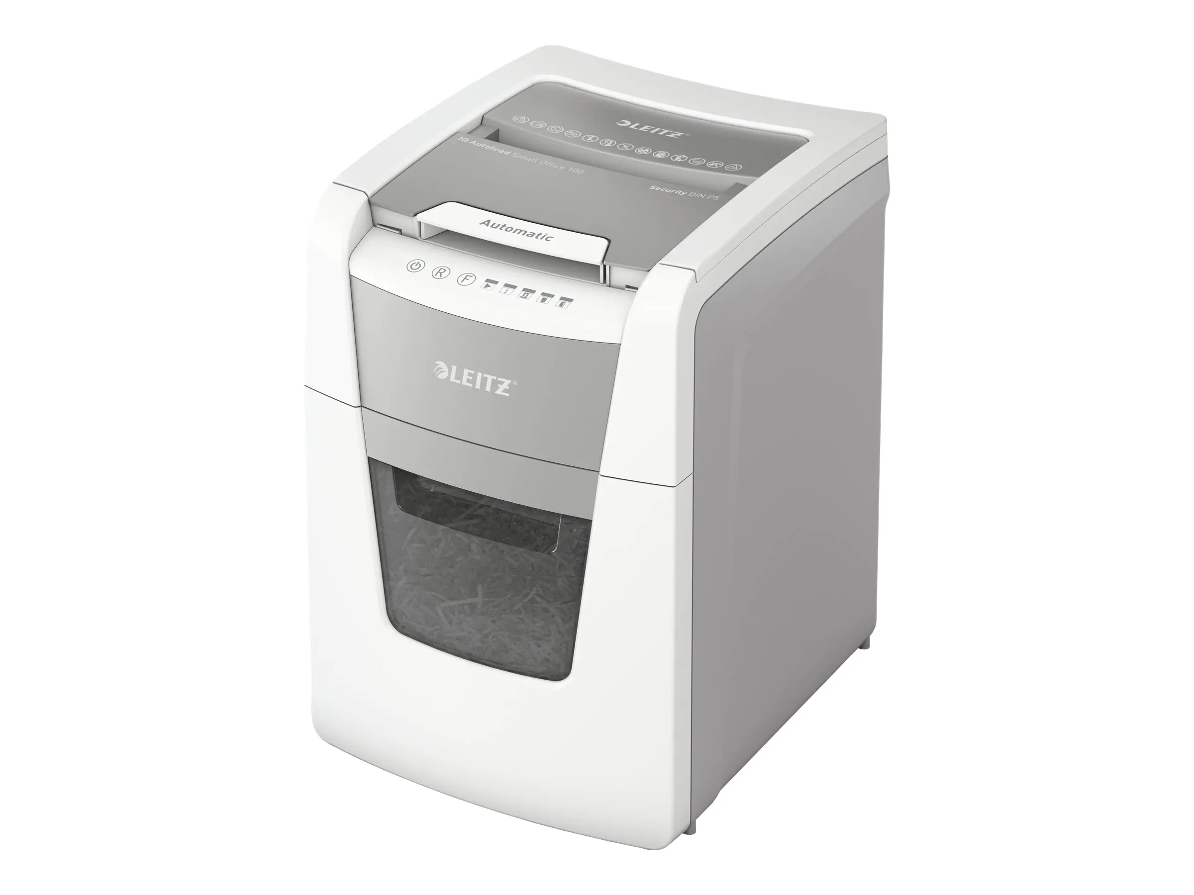 Vollautomatischer Aktenvernichter von Leitz mit einzigartiger Funktion für sauberes Entleeren des Abfallbehälters. So intelligent, dass er komplett selbständig arbeitet. Legen Sie einfach Ihren Papierstapel (inkl. Heft- und Büroklammern) ein, schließen Sie den Deckel und beginnen Sie Ihren Tag. Ideal für kleine Büros. Hohe Sicherheit und hervorragende Leistung mit diesem papierstaufreien, leisen und lang laufenden Autofeed-Aktenvernichter. Mit integrierter Anti-Papierstau-Technologie - stoppt automatisch und führt das Papier zurück, wenn zu viel eingelegt worden ist. Einfach zu entleerender, herausziehbarer Abfallbehälter mit Infrarot-Sensoranzeige bei 80 % vollem Abfallbehälter, einzigartige Funktion für sauberes Entleeren des Abfallbehälters (Schneidewellen laufen nach jedem Schredder-Vorgang kurz rückwärts), um zu vermeiden, dass beim Herausziehen Papierschnipsel hinter den Behälter fallen. Kontinuierliche Laufzeit von 20 Minuten, sodass die maximale Blattanzahl der Papierkammer in einem Durchgang geschreddert werden kann. Der energiesparende ECO-Schlafmodus wird nach 3 Minuten Nichtbenutzung aktiviert. Einfach und intuitiv zu bedienen dank Touch-Control. Schreddern unterstützt die Einhaltung der DSGVO. 2 + 1 Jahre Garantie bei Produktregistrierung.