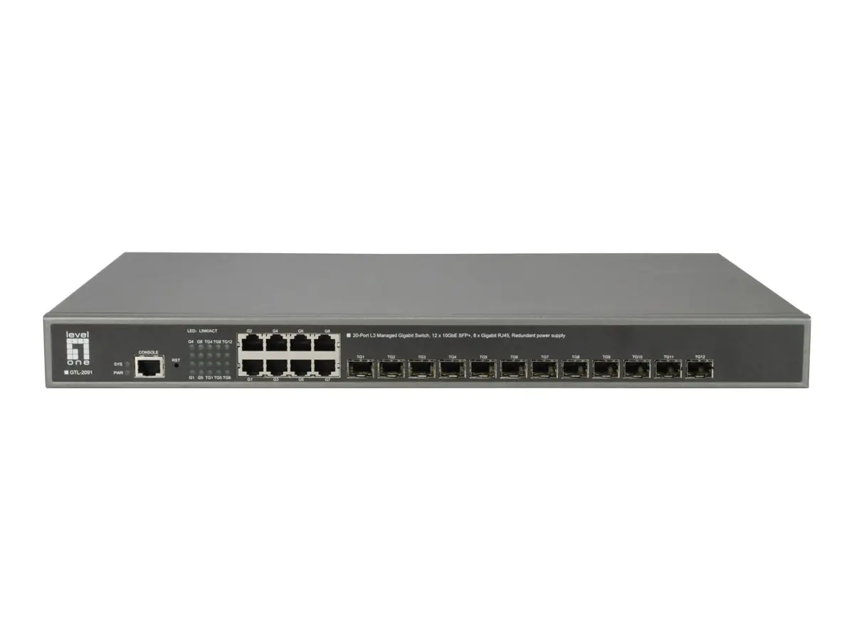LevelOne GTL-2091 - Switch - L3 - managed - 12 x 10 Gigabit SFP+ + 8 x 10/100/1000 - Desktop, an Rack montierbar
