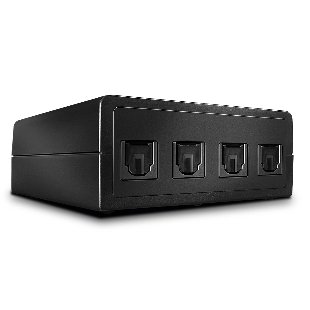- Verbindet vier digitale optische TosLink-Quellen mit einem optischen TosLink-Eingang