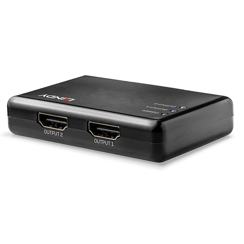 Der Lindy 2 Port HDMI 10.2G Splitter ist eine kompakte und günstige Lösung zum Verteilen des Signals einer HDMI-Quelle auf zwei 4K HDMI Displays.