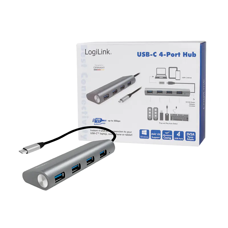 | Produktbeschreibung | LogiLink USB-C 3.1 hub, 4 port - Hub - 4 Anschlüsse | |||