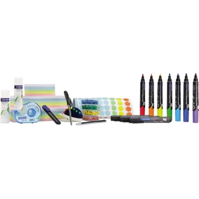 Liebevoll gefertigte Moderatorentasche für Lehrer, Trainer, Professoren, Ausbilder etc. Durch einmaliges Ordnungssystem mit Klett-Elementen ist Ihr Zubehör sicher aufbewahrt + fest fixiert. Hochwertig gearbeitet aus dunkelblauem Filz, hergestellt aus 100 % recyceltem Polyester, das aus recycelten PET-Flaschen gewonnen wird: Nachhaltig - umweltfreundlich - verleiht wertvollen Rohstoffen ein zweites Leben. Inhalt: 250 Kommunikationskarten oval 190 x 110 mm, in 5 Farben sortiert, 250 Kommunikationskarten rechteckig, 200 x 100 mm, in 5 Farben sortiert, 250 Kommunikationskarten rund, Ø 100 mm, in 5 Farben sortiert, 10 Board- und Flipchart-Marker PRO (1 x rot, 1 x blau, 1 x grün, 1 x violett, 1 x hellblau, 1 x orange, 1 x gelb, 3 x schwarz), 400 Pinn-Nadel (in gelb, blau, rot, grün), 2 Klebestifte (je 20 g), 1 Klebefilm-Handabroller mit Klebefilmrolle (25 m x 19 mm), 1 Nadelkissen, 1 Papierschere (6 Zoll), 1 Teleskop-Zeigestab, 1 Cutter (Klingenbreite 9 mm), 800 Markierungspunkte, je 200 Stück (in gelb, blau, grün, rot).