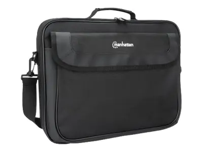 Manhattan Cambridge Laptop Bag 15.6", Clamshell Design, Black, LOW COST, Accessories Pocket, Document Compartment on Back, Shoulder Strap (removable), Equivalent to Targus TAR300, Notebook Case, Three Year Warranty - Notebook-Tasche - 39.6 cm (15.6") - Schwarz