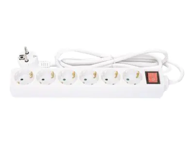 Manhattan Power Distribution Unit EU (2-pin), x6 gang/output with on/off switch, 2m cable, 16A, White, Extension Lead, PDU, Power Strip, Three Year Warranty - Steckdosenleiste - mit Switch - AC 220-250 V - 3680 Watt - Eingabe, Eingang Typ F - Ausgangsansc