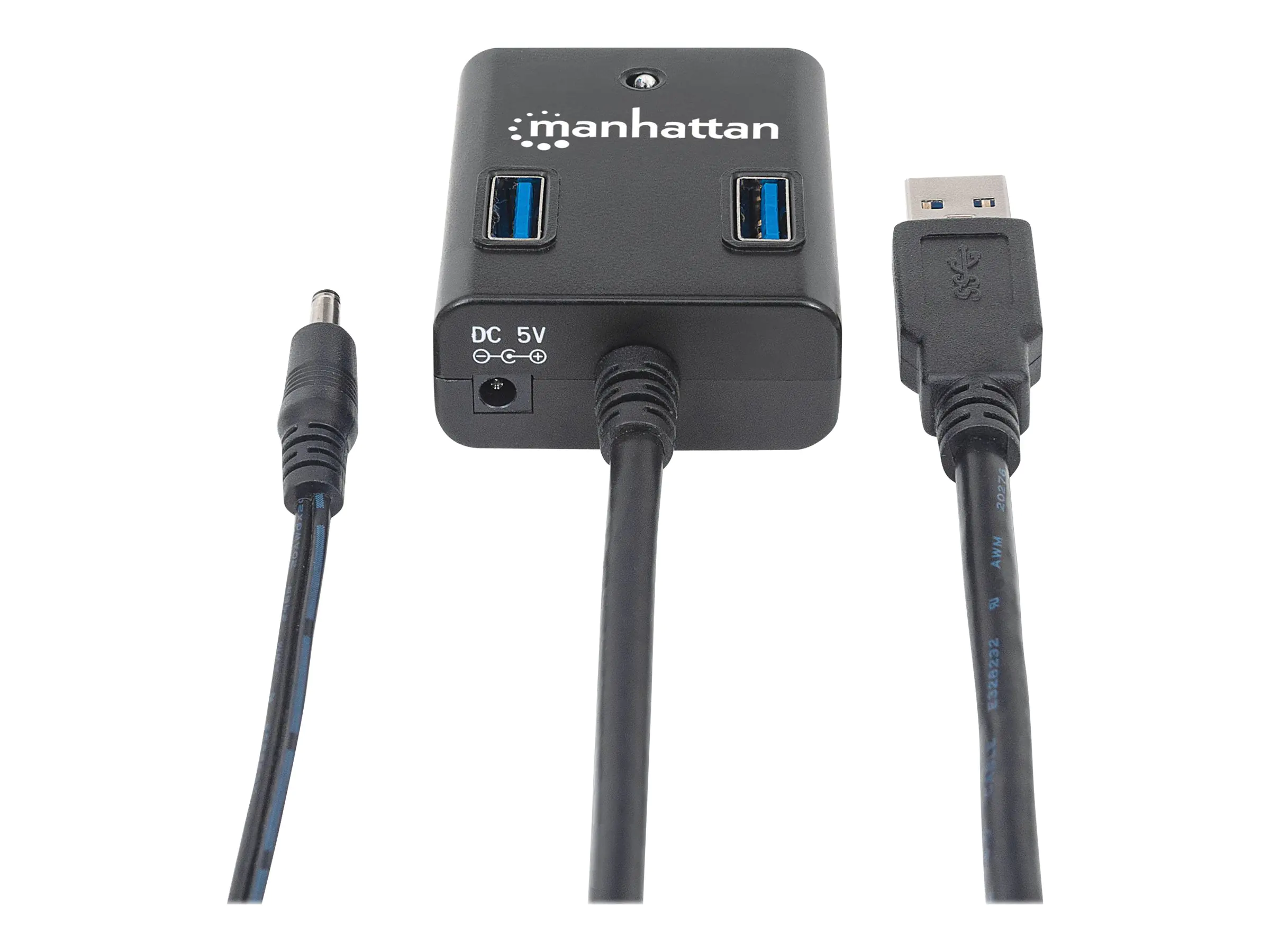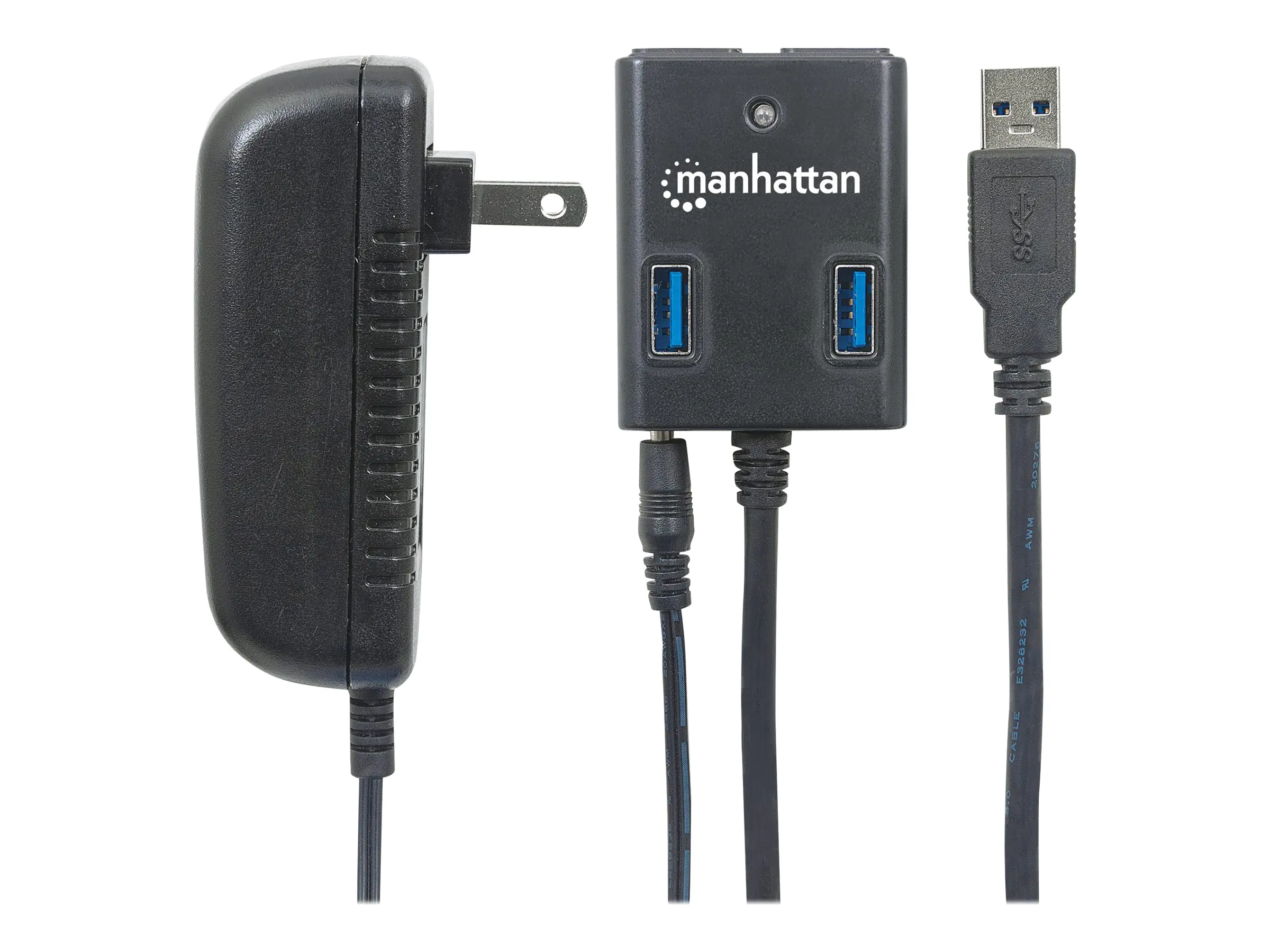 Manhattan USB-A 4-Port Hub, 4x USB-A Ports, 5 Gbps (USB 3.2 Gen1 aka USB 3.0), AC or Bus Power, Fast charge up to 0.9A per port with inc power adapter, SuperSpeed USB, Black, Three Year Warranty, Blister - Hub - 4 x SuperSpeed USB 3.0 - Desktop
