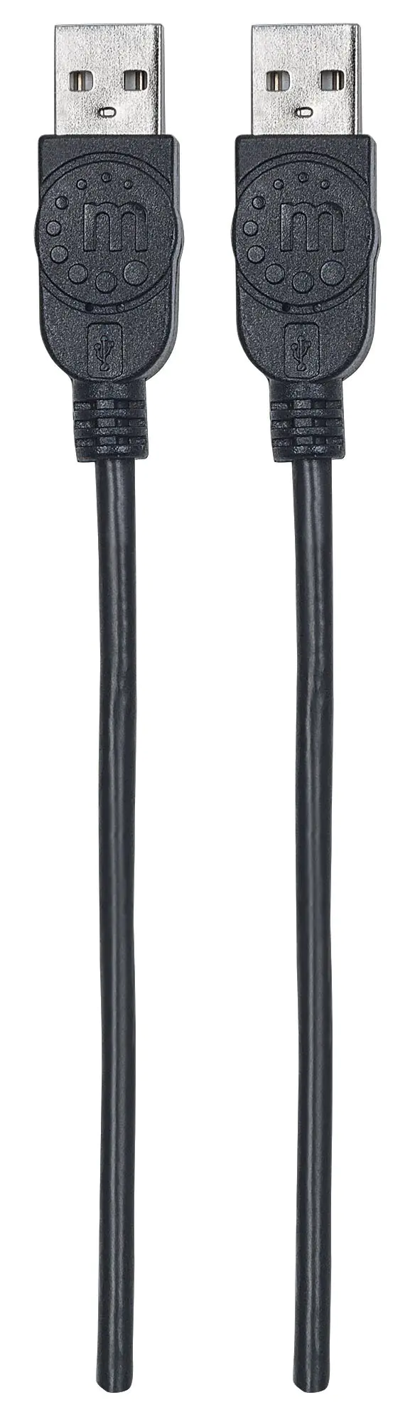 Manhattan USB-A to USB-A Cable, 1m, Male to Male, 480 Mbps (USB 2.0), Hi-Speed USB, Black, Lifetime Warranty, Polybag - USB-Kabel - USB (M) zu USB (M) - USB 2.0 - 1 m - geformt - Schwarz