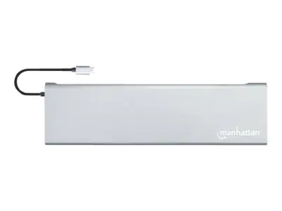 Manhattan USB-C Dock/Hub with Card Reader and MST, Ports (x9): Audio 3.5mm, Mini DP, Ethernet, HDMI, USB-A (x3), USB-C and VGA, With Power Delivery (100W) to USB-C Port (Note add USB-C wall charger and USB-C cable needed),All Ports can be used at the same