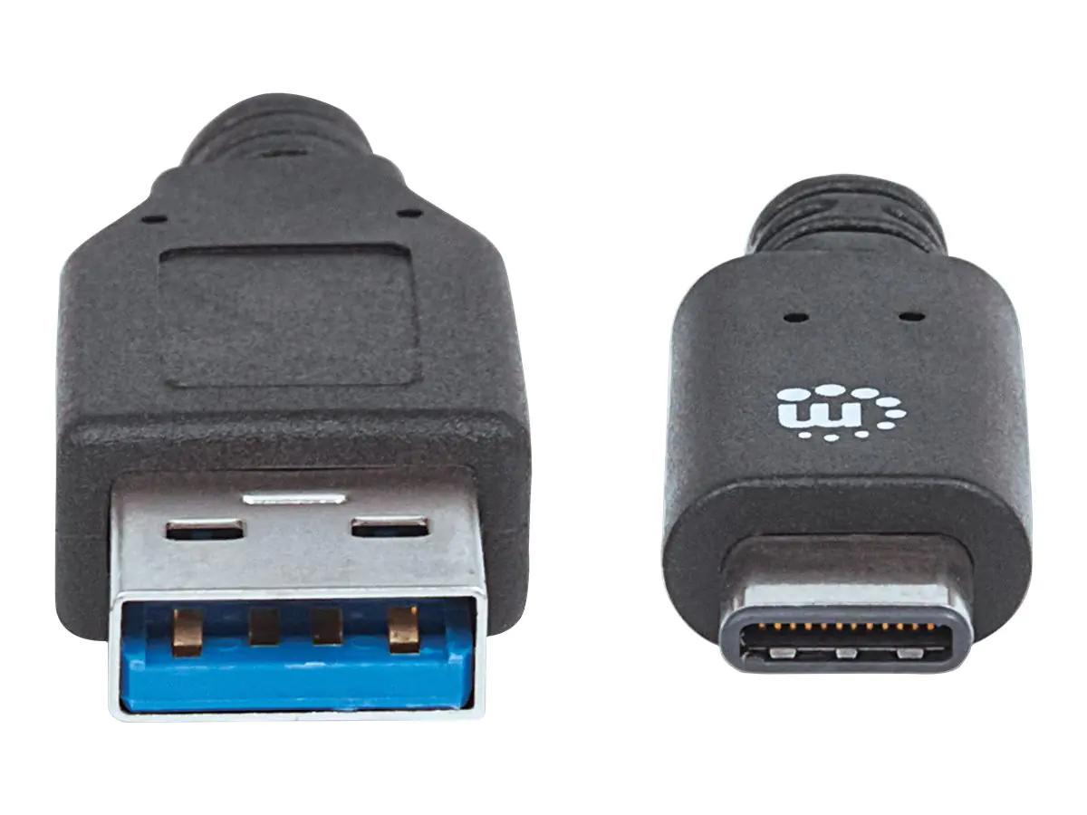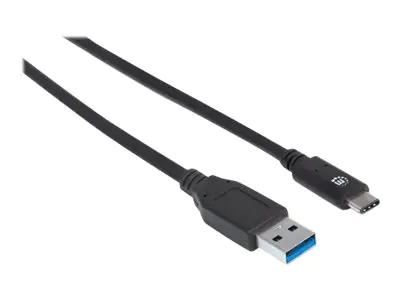 Manhattan USB-C to USB-A Cable, 1m, Male to Male, 10 Gbps (USB 3.2 Gen2 aka USB 3.1), 3A (fast charging), SuperSpeed+ USB, Black, Lifetime Warranty, Polybag - USB-Kabel - 24 pin USB-C (M) zu USB Typ A (M) - USB 3.1 Gen 2 - 3 A - 1 m - Schwarz