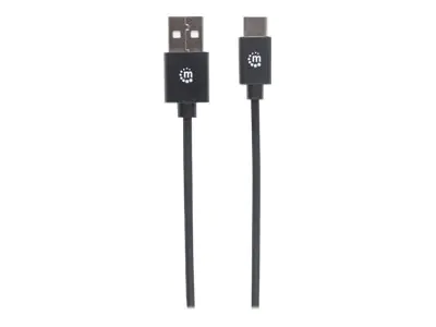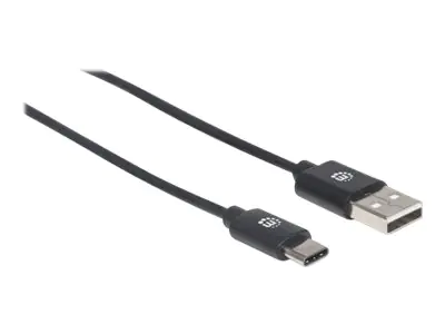Manhattan USB-C to USB-A Cable, 2m, Male to Male, Black, 480 Mbps (USB 2.0), Hi-Speed USB, Lifetime Warranty, Polybag - USB-Kabel - 24 pin USB-C (M) zu USB (M) - USB 2.0 - 3 A - 2 m - geformt - Schwarz