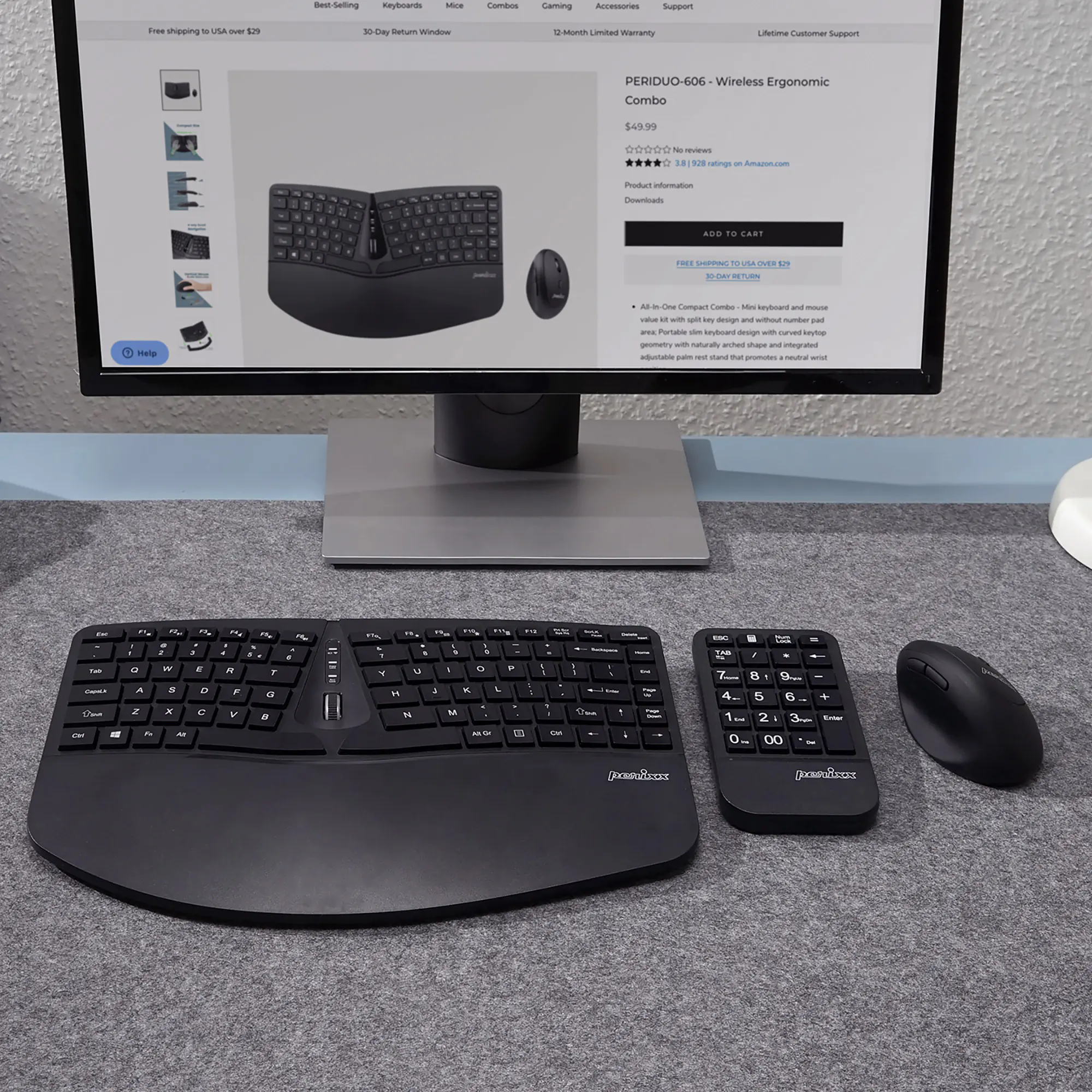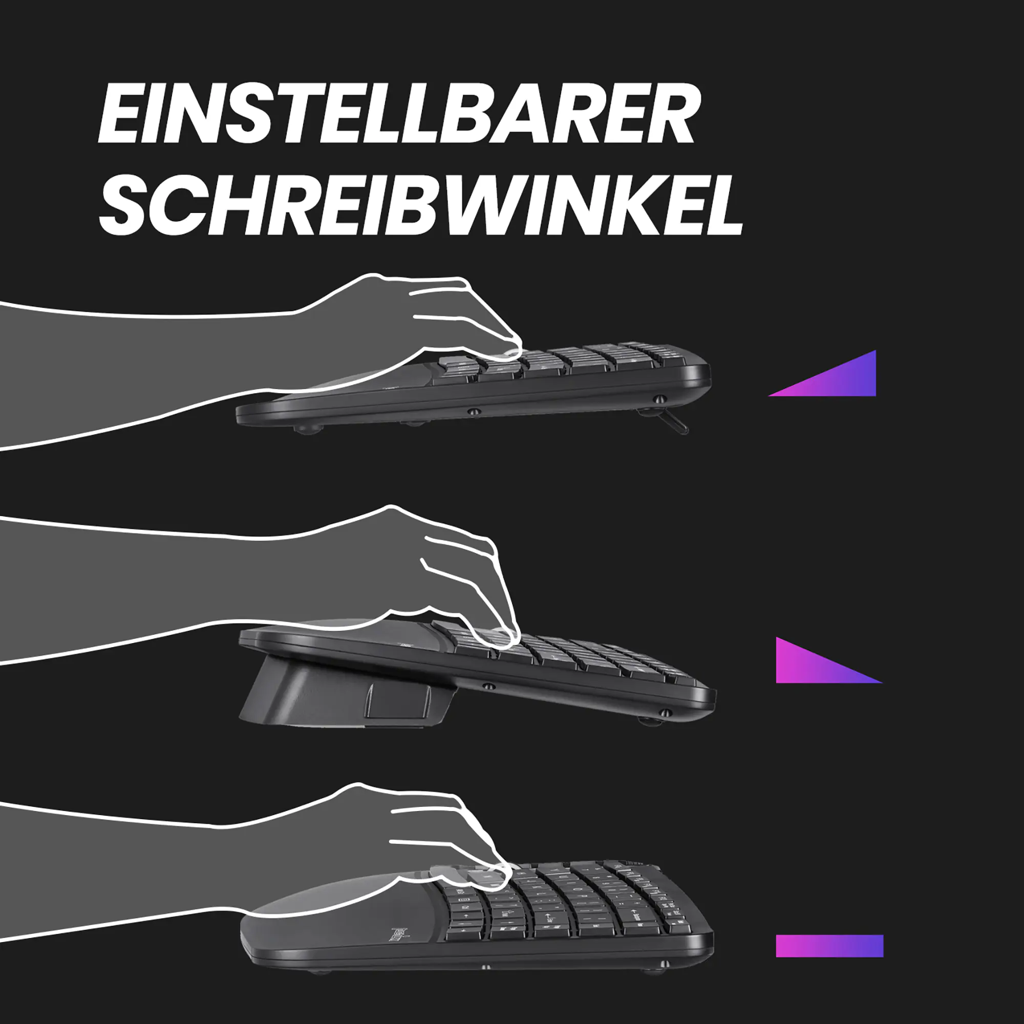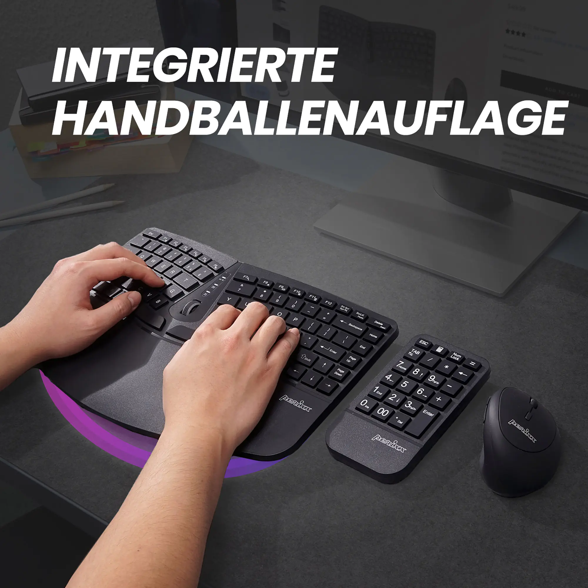 Perixx PERIDUO-606A DE 3-in-1 Tastatur- und Maus-Set kabellos ergonomisch - Touchpen - Optisch