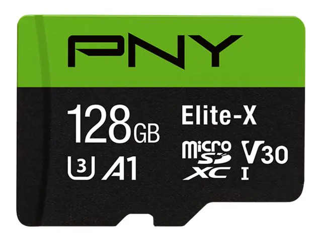 PNY Elite-X - Flash-Speicherkarte (microSDXC-an-SD-Adapter inbegriffen) - 128 GB - A1 / Video Class V30 / UHS-I U3 / Class10 - microSDXC UHS-I
