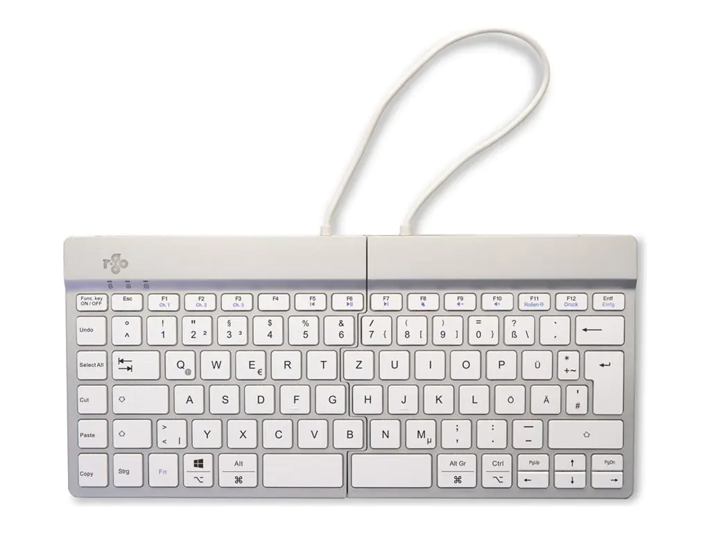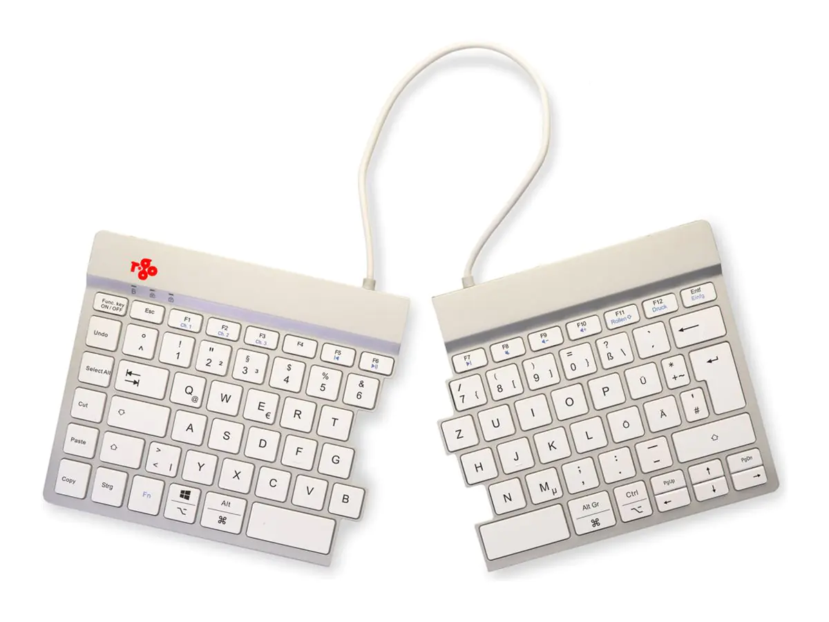 R-Go Ergonomische Tastatur Split break - Tastatur - mit integrierter Pauseanzeige - kabellos - Bluetooth 5.0 - QWERTZ - Deutsch - weiß