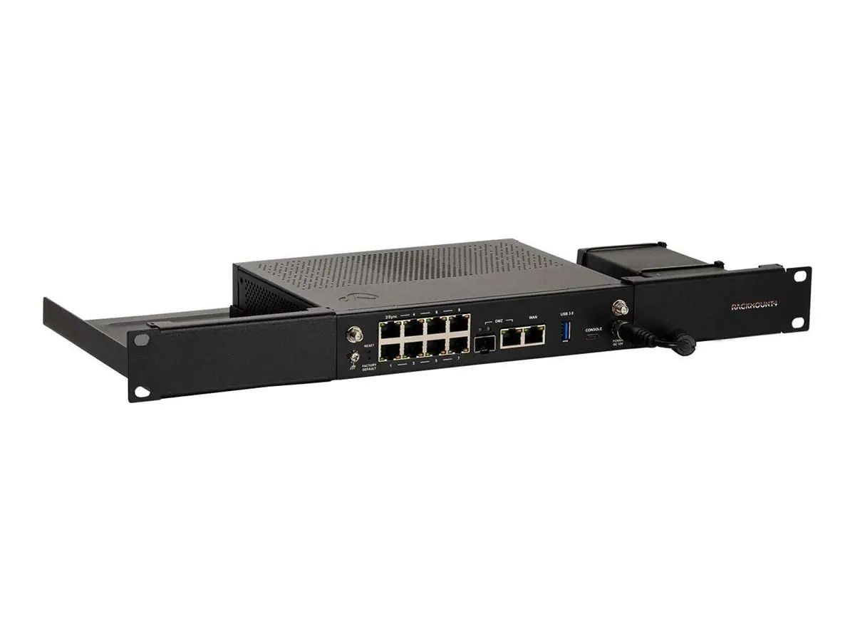 Mit dem RM-CP-T6 können Sie Ihre Check Point Desktop Firewalls auf ein 19-Inch-Gestell montieren. Das Gestell ist speziell auf die aufgelisteten Modelle zugeschnitten, um perfekte Passform zu garantieren. Die Verbindungen ebenso wie der Konsolenanschluss befinden sich an der Vorderseite, um den Zugang zu erleichtern. Die Stromversorgung ist fixiert, um ungewollte Stromausfälle zu vermeiden.