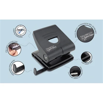 Robuster Locher für zuverlässiges und präzises Lochen mit Gummi-Konfettifach mit Klappe für einfache Entleerung. Mit antibakteriellem Schutz (Germ-SavvyT). 15 Jahre Garantie gegen Material- und Herstellungsfehler.