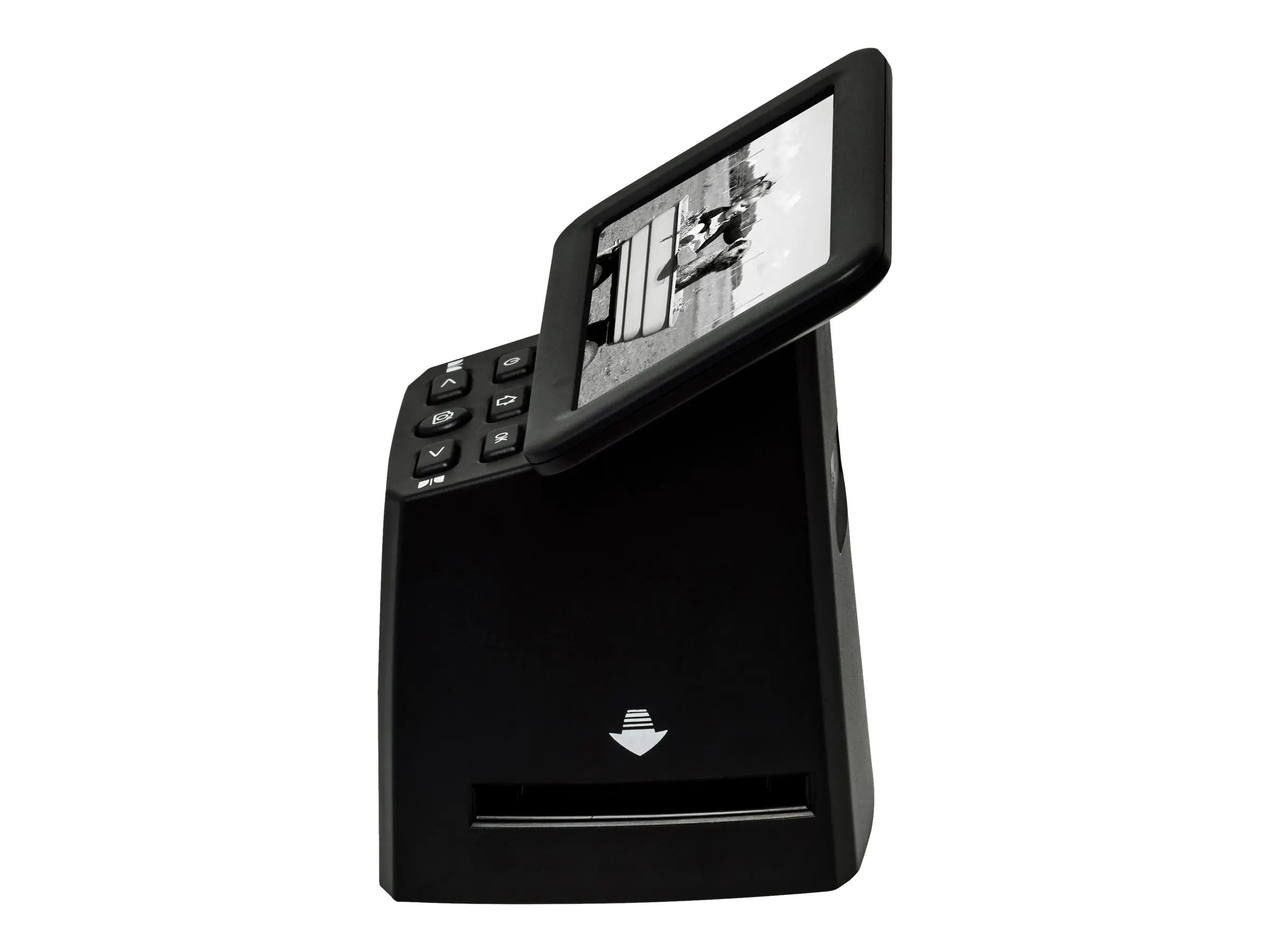 Mit dem Reflecta x33-Scan lassen sich auch große Mengen von Dias und Negativen auf einfache, aber hochwertige Art digitalisieren. Ein CMOS-Sensor mit 15,3 Megapixeln sorgt zusammen mit der Reflecta Bildverbesserungs-Technologie IET für hohe Bildqualität und brillante Farbwiedergabe. Der Scanner verfügt über ein IPS-Display mit 12,7 cm Diagonale und einem großem Betrachtungswinkel, wodurch Auswählen, Scannen und Wiedergeben der Bilder zum wahren Vergnügen wird. Der x33-Scan digitalisiert ein Bild in weniger als zwei Sekunden und speichert es direkt als JPEG-Dateien auf einer SD-Karte. Damit ist er als Stand-Alone-Gerät vollkommen unabhängig von Computern. Die beiliegenden Halter ermöglichen das Scannen von gerahmten Dias mit einer Dicke von bis zu 3,2 mm sowie von 35mm-Filmstreifen mit bis zu sechs Bildern. Die Halter sorgen zudem für eine optimale Planlage und einen schonenden Umgang mit dem wertvollen Filmmaterial.