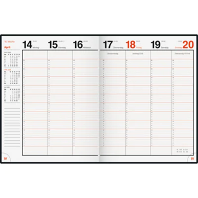 - Kalenderaufteilung: 1 Woche/2 Seiten