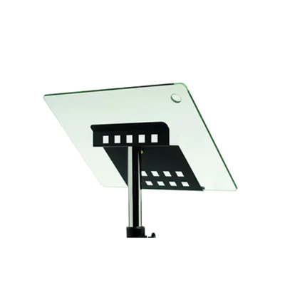 Elegantes, mobiles Rednerpult für Vorträge, Präsentationen, Ansprachen. Große Pultplatte und Ablage aus gehärtetem Glas, inklusive Aussparung als Mikrofon-Halterung. Elliptisch geformter Sichtschutz aus hochwertigem Acryl in transparentem Anthrazit. Höhenverstellung durch Federn, passt sich der Körpergröße an. Untere Ablage separat höhenverstellbar und drehbar. Hochwertige, feststellbare Rollen aus Polymer. Einfache Montage.