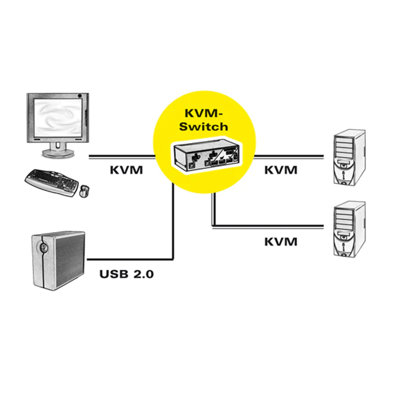 - Die Umschaltung zwischen den PCs erfolgt entweder über Tastenkombination (Hot Key) oder automatisch im Scanlauf