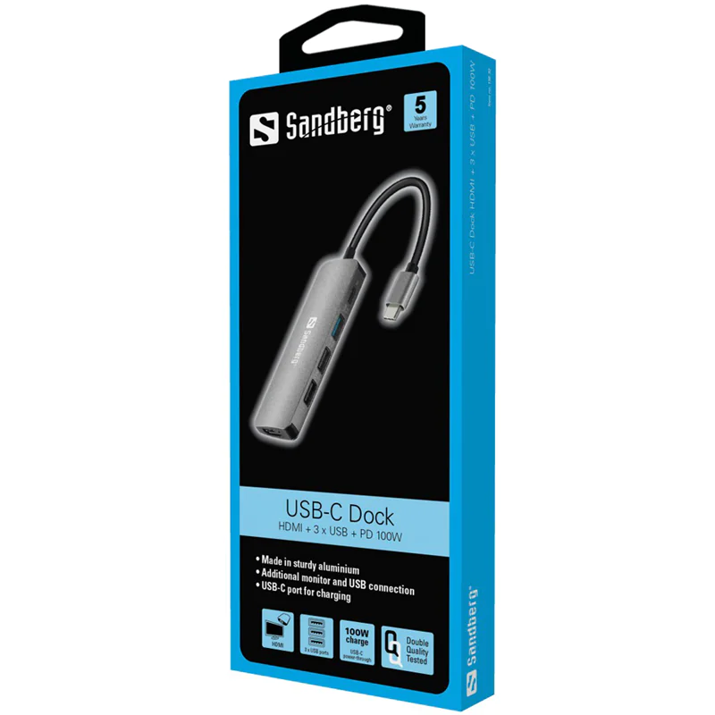 | SANDBERG USB-C Dock HDMI+3xUSB+PD 100W - Dockingstation | ||||