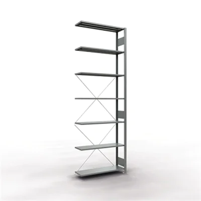 Aussteifung durch Kreuzstrebe. Einfaches Ausrichten des Regals durch Spannschlösser an den Kreuzstreben.Ideal zum Aufbau von Regalzeilen vor Wänden und als Doppelregal Rücken an Rücken. Fachböden im Raster in der Höhe verstellbar. Geeignet zum Bau mehrstöckiger Regalanlagen. Schneller Aufbau durch einfaches Stecken der Fachböden.