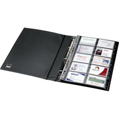 Elegantes Visitenkarten-Ringbuch im großen A4-Format (zweireihig). Mit stabiler Ringmechanik für die perfekte und übersichtliche Archivierung von Visitenkarten und anderen Karten.