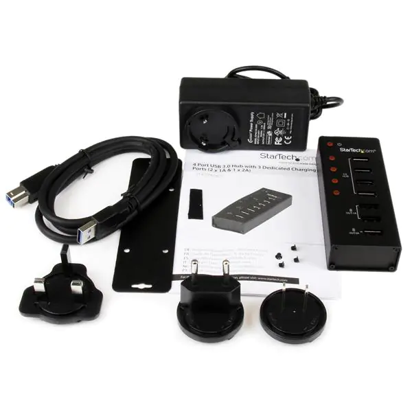 StarTech 4 Port USB 3.0 Hub plus 3 Ladeanschlüsse (2x 1A & 1x 2A) - Metallgehäuse zur Wandmontage - Hub - 4 x SuperSpeed USB 3.0 - Desktop - für P/N: PEXUSB3S3GE, SVA12M5NA, USB312SAT3CB, USB315CB2M, USBLT1MWS, USBLTM1MBK, USBLTM1MWH