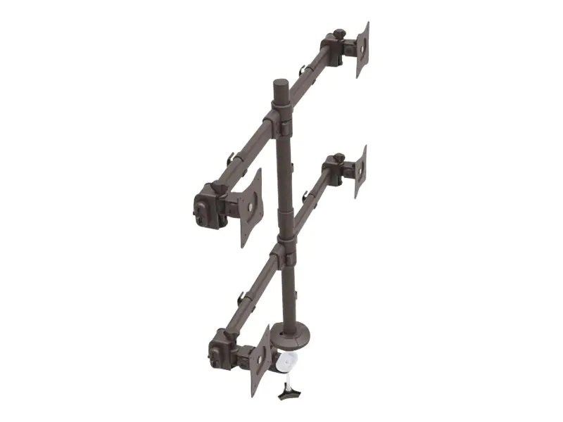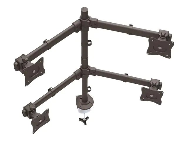 Gestalten Sie den perfekten Arbeitsplatz, indem Sie vier Monitore an einer Halterung montieren, die sicher an Ihrem Tisch, Schreibtisch oder sonstigen Flächen befestigt wird. Indem Sie mehrere Bildschirme gleichzeitig betrachten, arbeiten Sie effizienter und schaffen gleichzeitig Platz.