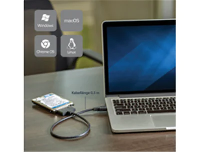 Dieser Kabeladapter ist kompakt und leicht, sodass er ganz einfach in einer Laptoptasche oder anderen Tasche verstaut werden kann. Nutzen Sie ihn, wo immer Sie sind, um schnell auf wertvolle Daten zuzugreifen - keine externe Stromquelle erforderlich.