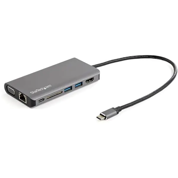 | StarTech.com USB C Multiport Adapter, USB-C Mini Travel Dock with 4K HDMI or 1080p VGA, 3x USB 3.0 Hub, SD, GbE, Audio, 100W PD Pass-Through, Portable Docking Station for Laptop/Tablet - USB 3.0 Mini Dock (DKT30CHVAUSP) | ||||