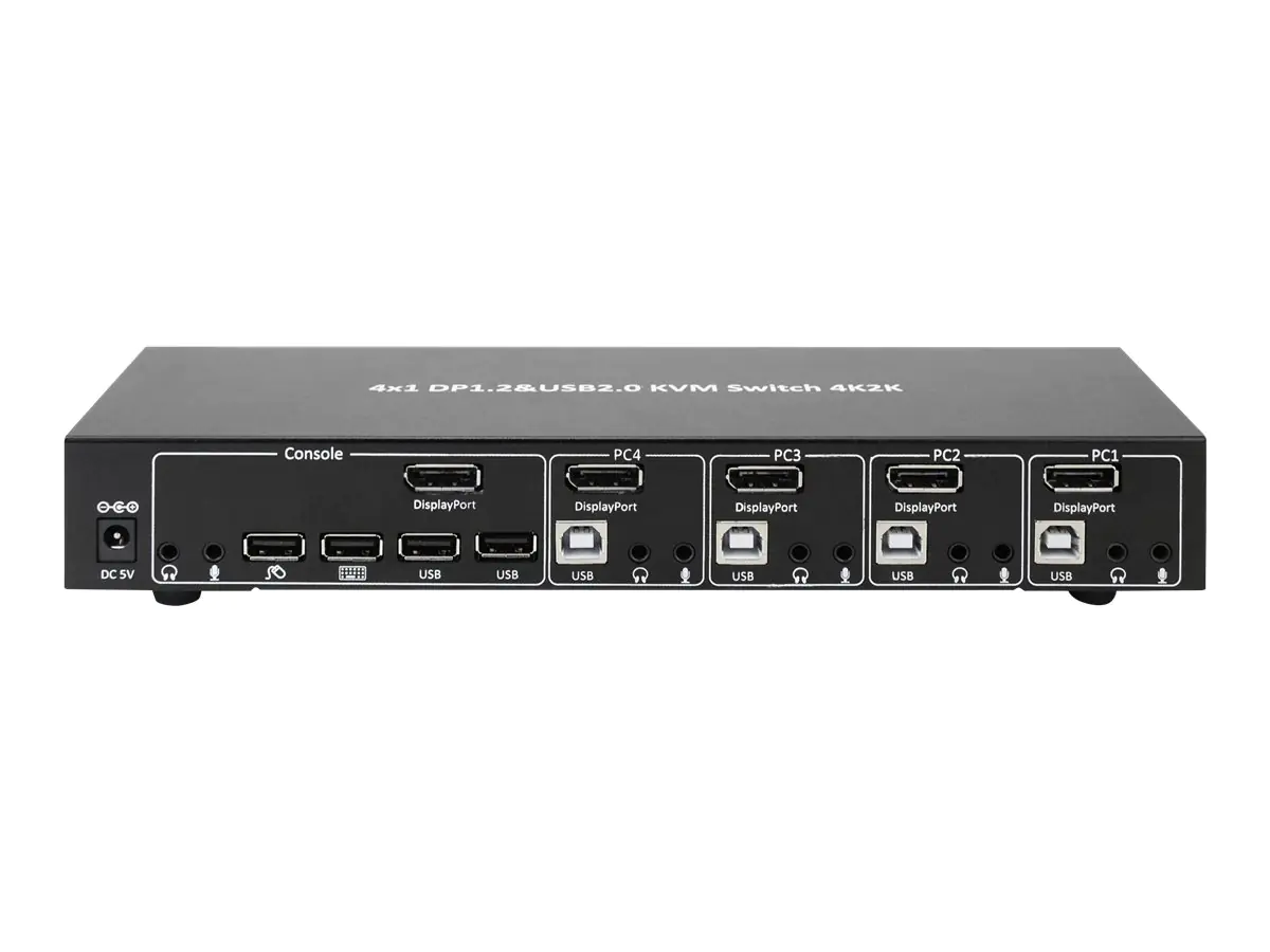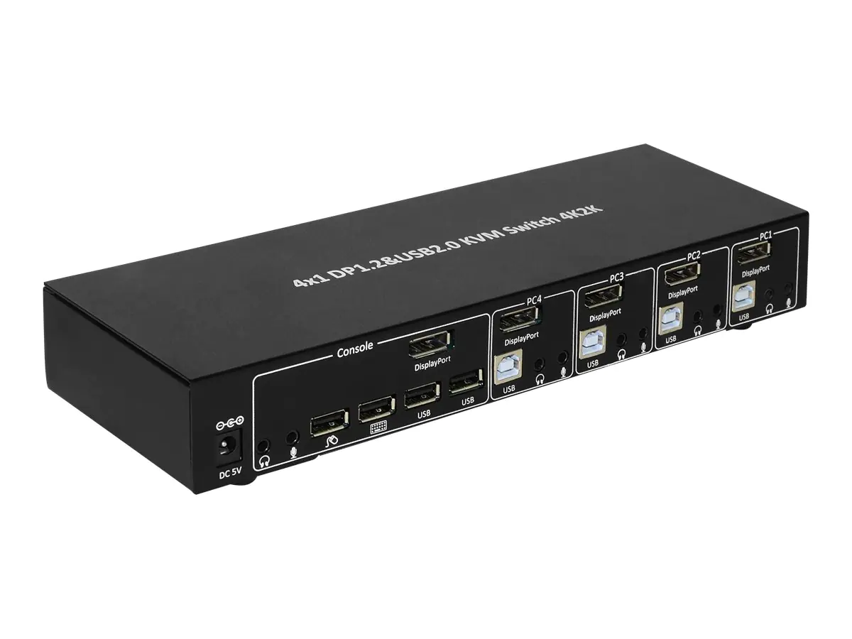 Techly 4 Port DisplayPort 1.2 KVM Switch with Hub and audio - KVM-/Audio-/USB-Switch - 4 x KVM/Audio - 1 lokaler Benutzer - Desktop