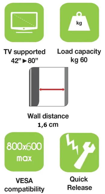 | Techly Klammer für LCD TV (Ultra-dünn) - Schwarz - Bildschirmgröße: 106.7-203.2 cm (42"-80") | ||||