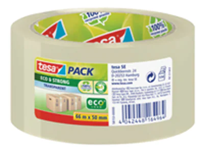 Das robuste und umweltfreundliche Verpackungsklebeband für sicheres Verpacken und Bündeln. Rollenkern aus 100 % recyceltem Karton. Klebemasse aus wasserbasiertem Acrylat.