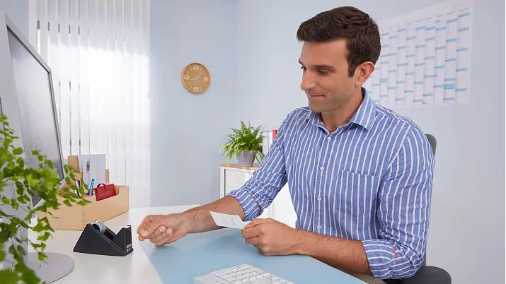 tesafilm: Der klassische tesafilm ist aus keinem Büro und Haushalt wegzudenken und steht für unkompliziertes Kleben im Alltag.