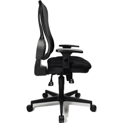 Klassischer Komfort-Drehstuhl mit atmungsaktiver Netz-Rückenlehne. Stufenlose Sitzhöhenverstellung mit Toplift. Ergonomische taillierte Rückenlehne mit integrierter Lendenwirbelstütze. Körpergewichtseinstellung individuell einstellbar. Neues Design-Fußkreuz, ausgerüstet mit lastabhängig gebremsten Sicherheitsdoppelrollen.