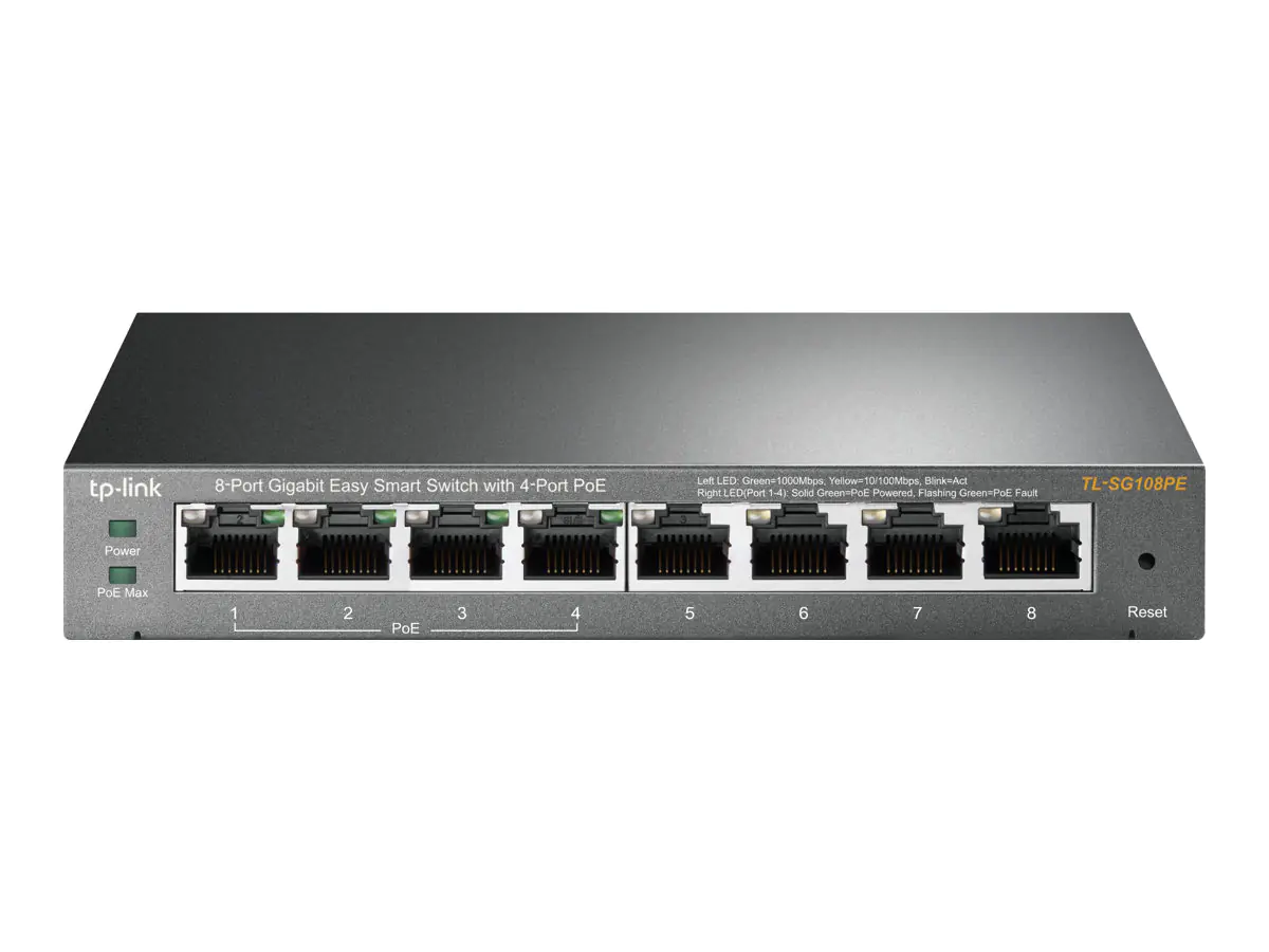 | TP-LINK Easy Smart TL-SG108PE - Switch - Smart - 4 x 10/100/1000 (4 PoE) | ||||