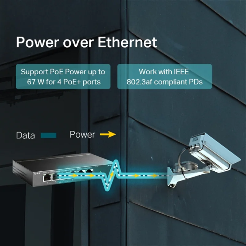 - 4x PoE+ Ports versorgen PoE-Geräten gleichzeitig mit Strom und Daten