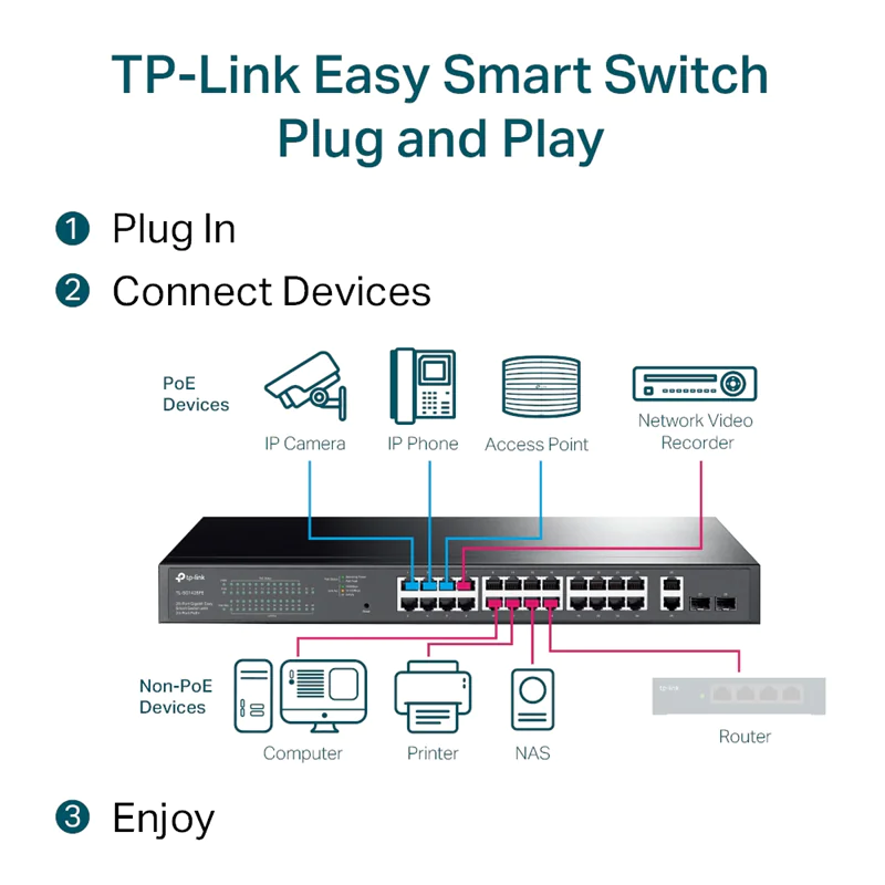 | TP-LINK TL-SG1428PE - Switch - Smart - 24 x 10/100/1000 (PoE+) | ||||