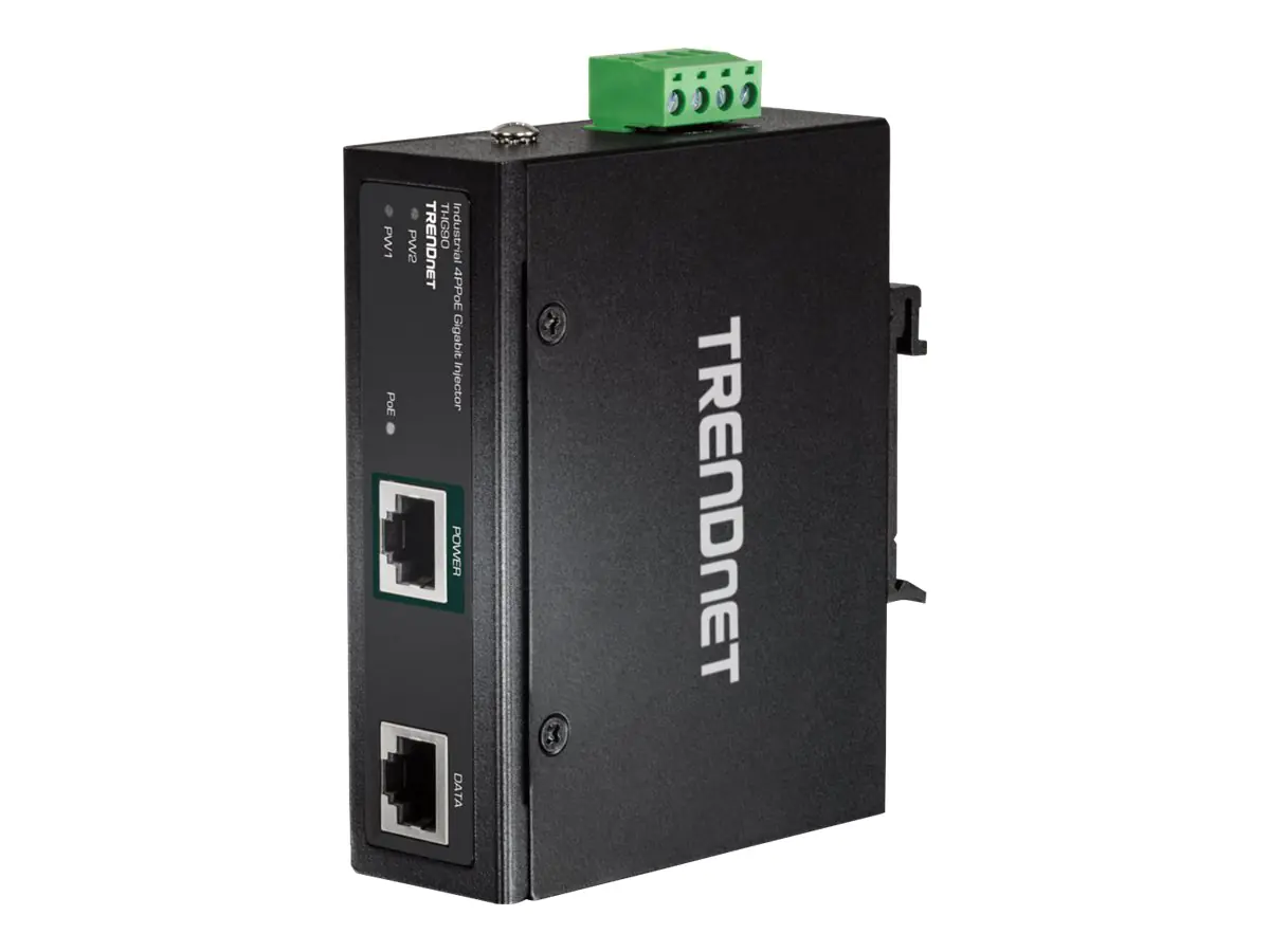 Der TI-IG90 von TRENDnet ist ein zuverlässiger IP30-geschützter industrieller Gigabit-4PPoE-Injektor mit gehärteten Komponenten für extreme und raue industrielle Umgebungen. Schließen Sie den industriellen PoE-Injektor TI-IG90 an einen Nicht-PoE-Gigabit-Switch an und führen Sie dann ein Ethernet-Kabel bis zu 100 Meter (328 Fuß), um ein PoE-Gerät zu vernetzen. Der industrielle PoE-Injektor TI-IG90 versorgt ein PoE-, PoE+-, UPoE- oder 4PPoE-Gerät (bis zu 90 Watt) mit Strom. Dieser industrielle PoE-Injektor verfügt über zwei redundante Stromeingänge mit Überlastschutz, um Anwendungen ohne Ausfallzeiten zu unterstützen. Sowohl Hutschienen- als auch Wandhalterungen sind im Lieferumfang des industriellen PoE-Injektors enthalten.