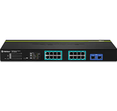 TRENDnet TPE 1620WS 16-Port Gigabit Web Smart PoE+ Switch - Switch - managed - 16 x 10/100/1000 (PoE+) + 2 x Shared Gigabit SFP - Desktop, an Rack montierbar - PoE+ (185 W)
