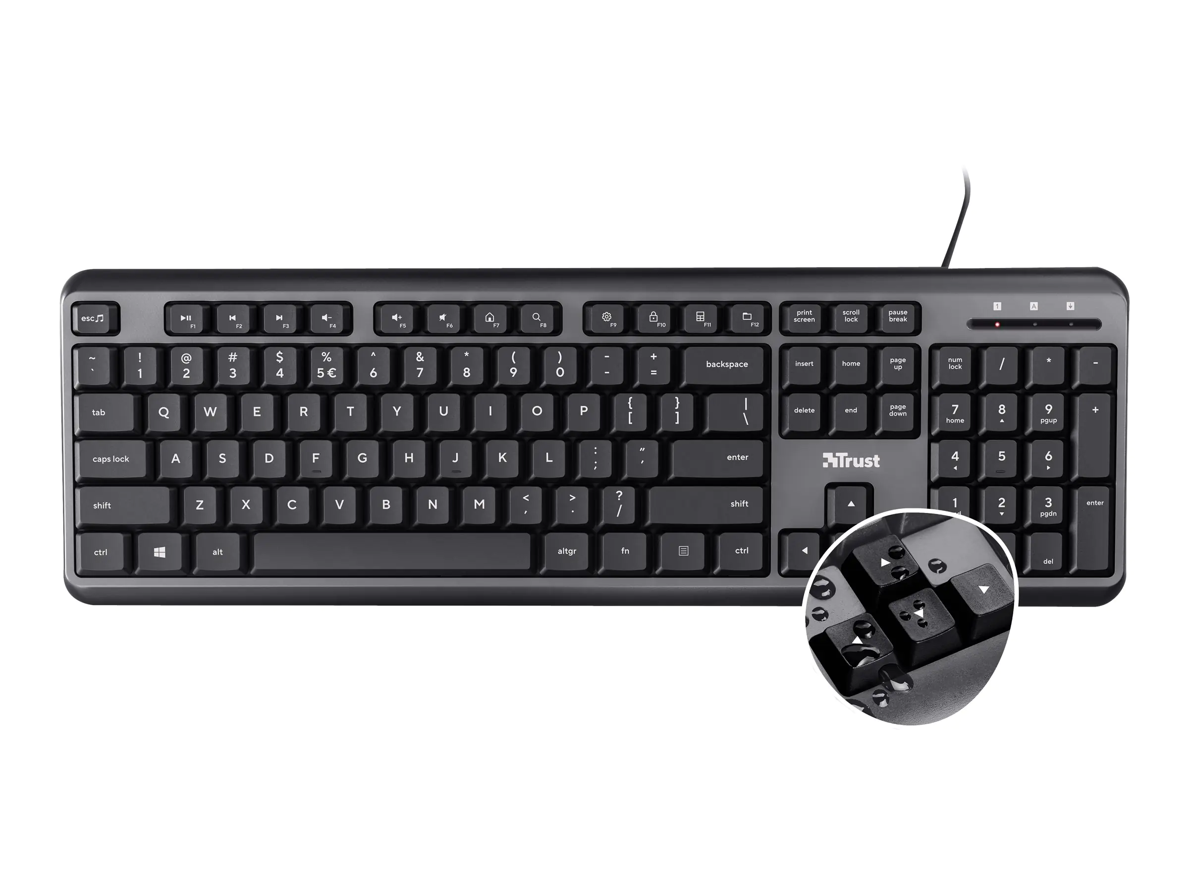 Die kompakte Trust Ody Kabeltastatur mit originalgroßem Layout und flachen Tasten für weiches, müheloses Tippen ist eine ausgezeichnete Ergänzung für jedes Homeoffice. Bereit für die Arbeit?