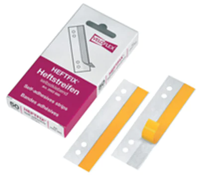 Heftstreifen zum Abheften von Schriftgut, welches nicht gelocht werden darf, aber abgeheftet werden soll, wie z.B. Muster, Urkunden, Broschüren etc.