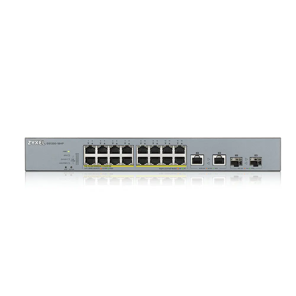 Zyxel GS1350-18HP - Switch - Smart - 16 x 10/100/1000 (PoE+) + 2 x Combo Gigabit Ethernet/Gigabit SFP - Desktop - PoE+ (250 W)